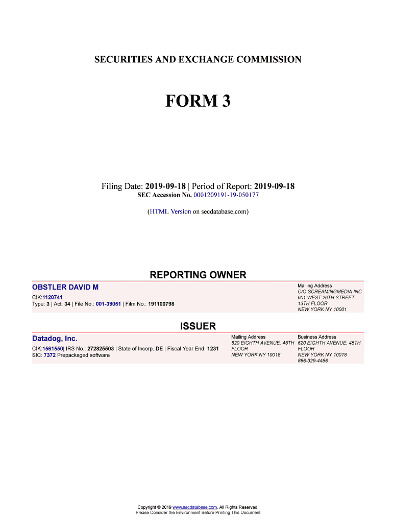 SECURITIES AND EXCHANGE COMMISSIONER 3Filing Date: 20190918 Period of Report: 20190918 SEC Accession No. 000120919119050177 (HTML Version on secdatabase.com)REPORTING OWNER Mailing Address C/O SCREAMINGMEDIA