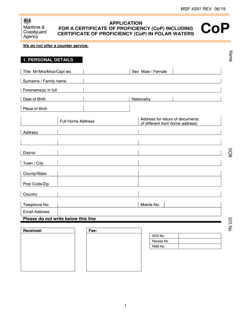 CERTIFICATE OF PROFICIENCY (CoP) IN POLAR Interscope do not offer a counter service. Name1. PERSONAL DETAILS