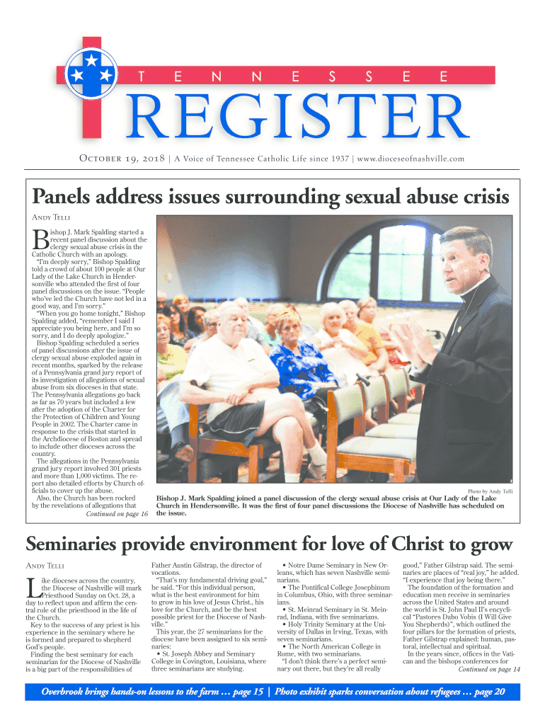 October 19, 2018Tennessee Register 1October 19, 2018 A Voice of Tennessee Catholic Life since 1937 www.dioceseofnashville.comPanels address issues surrounding sexual abuse crisis Andy TelliBishop