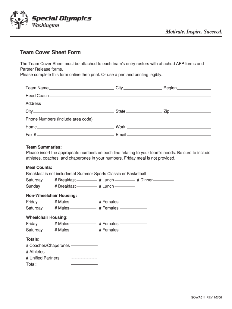 Get the free Team Cover Sheet Form - Special Olympics Washington - specialolympicswashington
