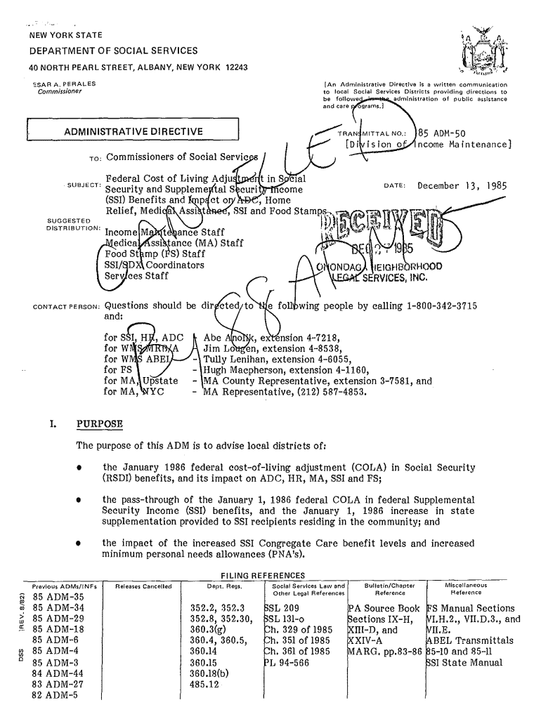 NEW YORK STATEDEPARTMENT OF SOCIAL SERVICES 40 NORTH PEARL STREET, ALBANY, NEW YORK 12243 'SAR A. PERCALES An Administrative Directive Is a written communication to local Social Services Districts