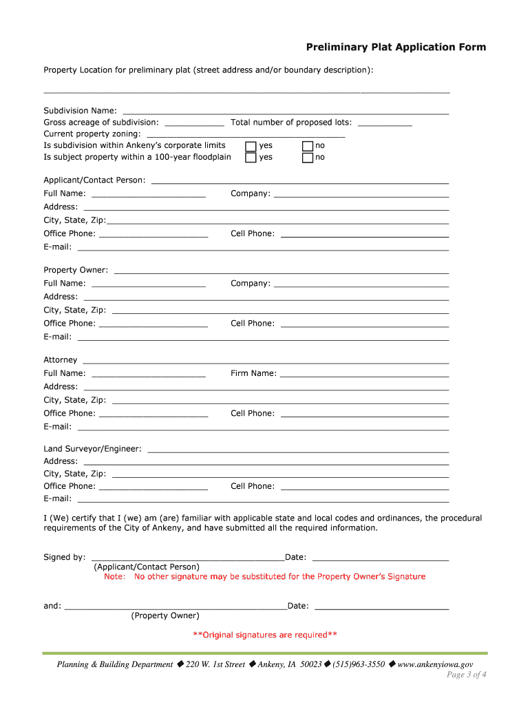 Subdivision Preliminary Plat Approval Process & Application PacketApplication packet includes the following: Preliminary Plat application form (must be complete) Preliminary Plat drawing checklistApplication
