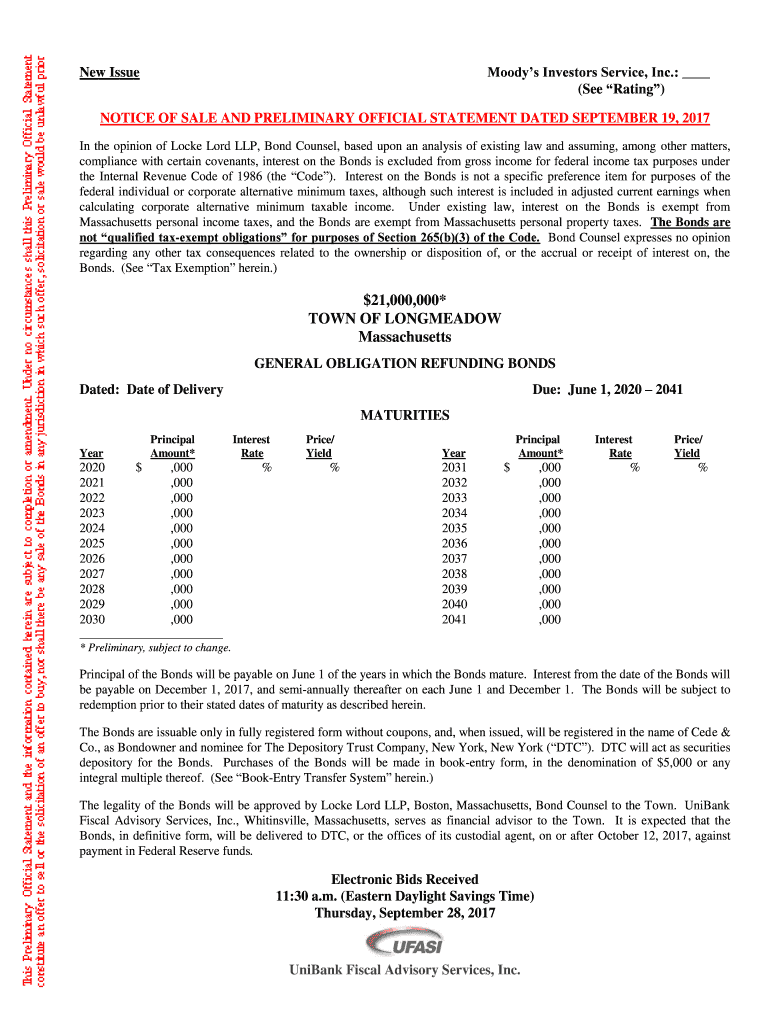 Moody's Investors Service, Inc.: (See Rating)New IssueNOTICE OF SALE AND PRELIMINARY OFFICIAL STATEMENT DATED SEPTEMBER 19, 2017, In the opinion of Locke Lord LLP, Bond Counsel, based upon an analysis