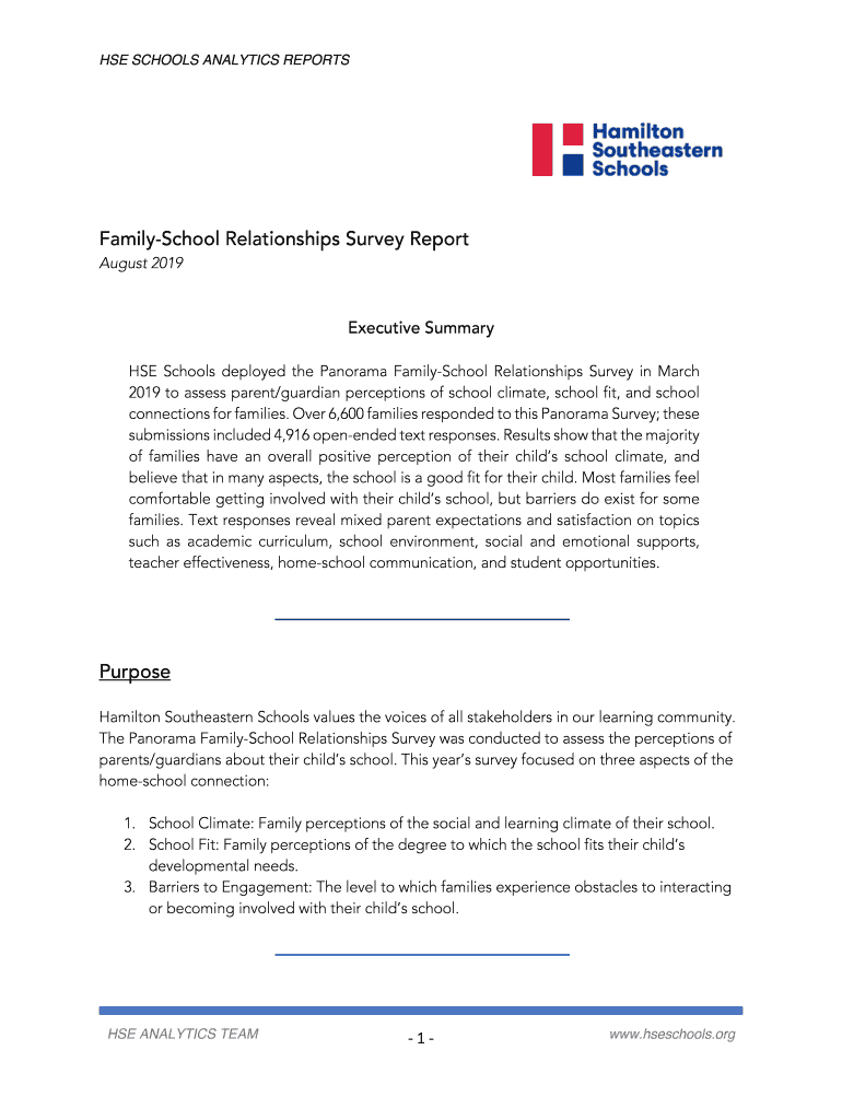 HSE SCHOOLS ANALYTICS REPORTSFamilySchool Relationships Survey Report
