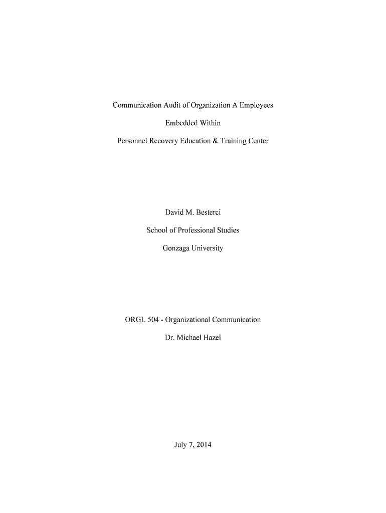 Communication Audit of Organization A Employees Embedded Within Personnel Recovery Education & Training Center David M. Better School of Professional Studies Gonzalo UniversityORGL 504 Organizational
