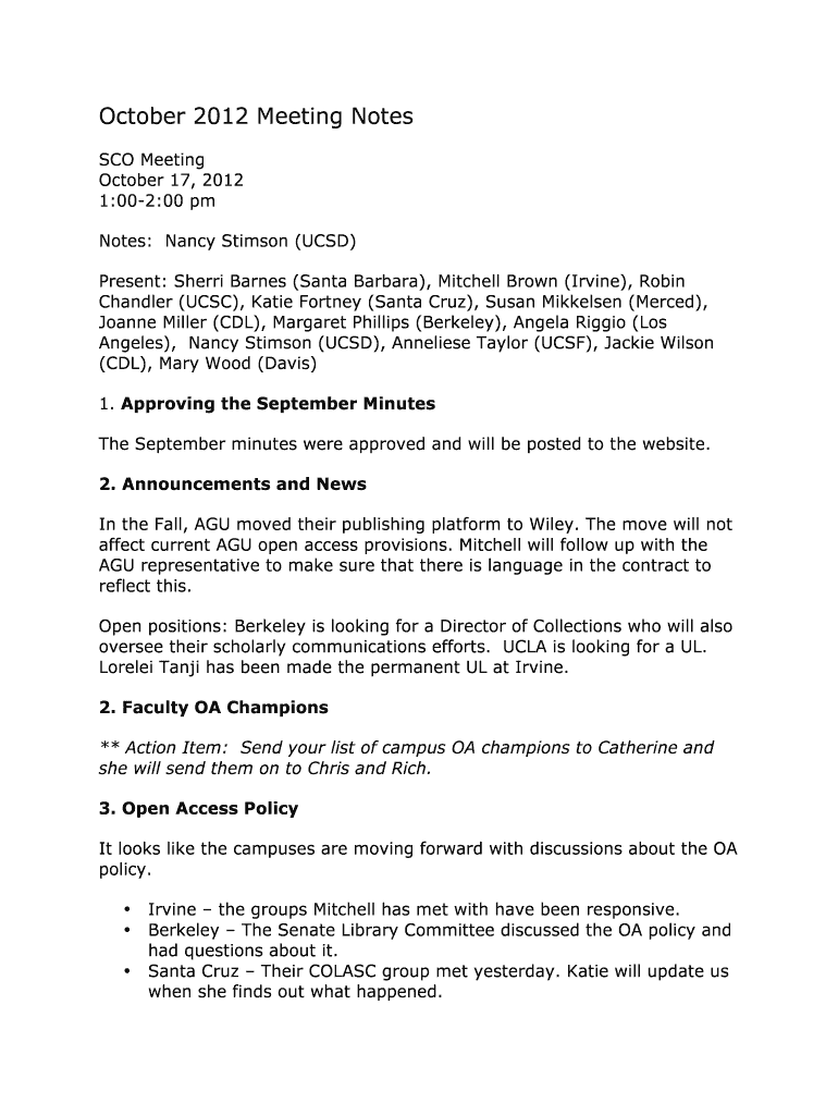 Present: Sherri Barnes (Santa Barbara), Mitchell Brown (Irvine), Robin