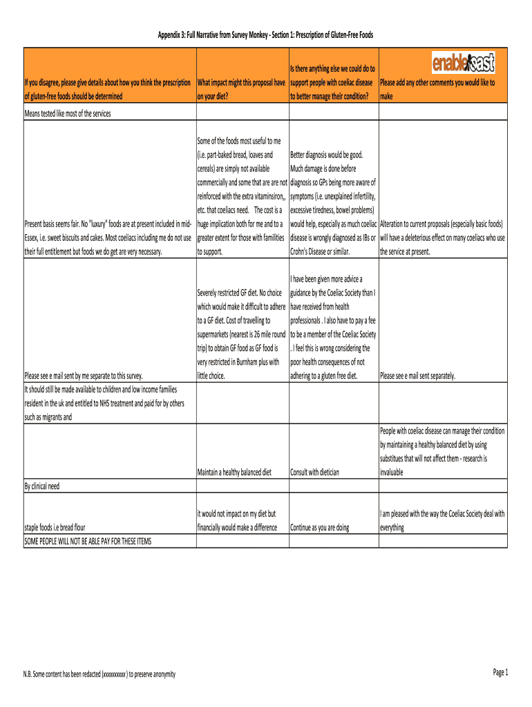 Appendix 3: Full Narrative from Survey Monkey Section 1: Prescription of Gluten-free Foods you disagree, please give details about how you think the prescription of gluten-free foods should be determined