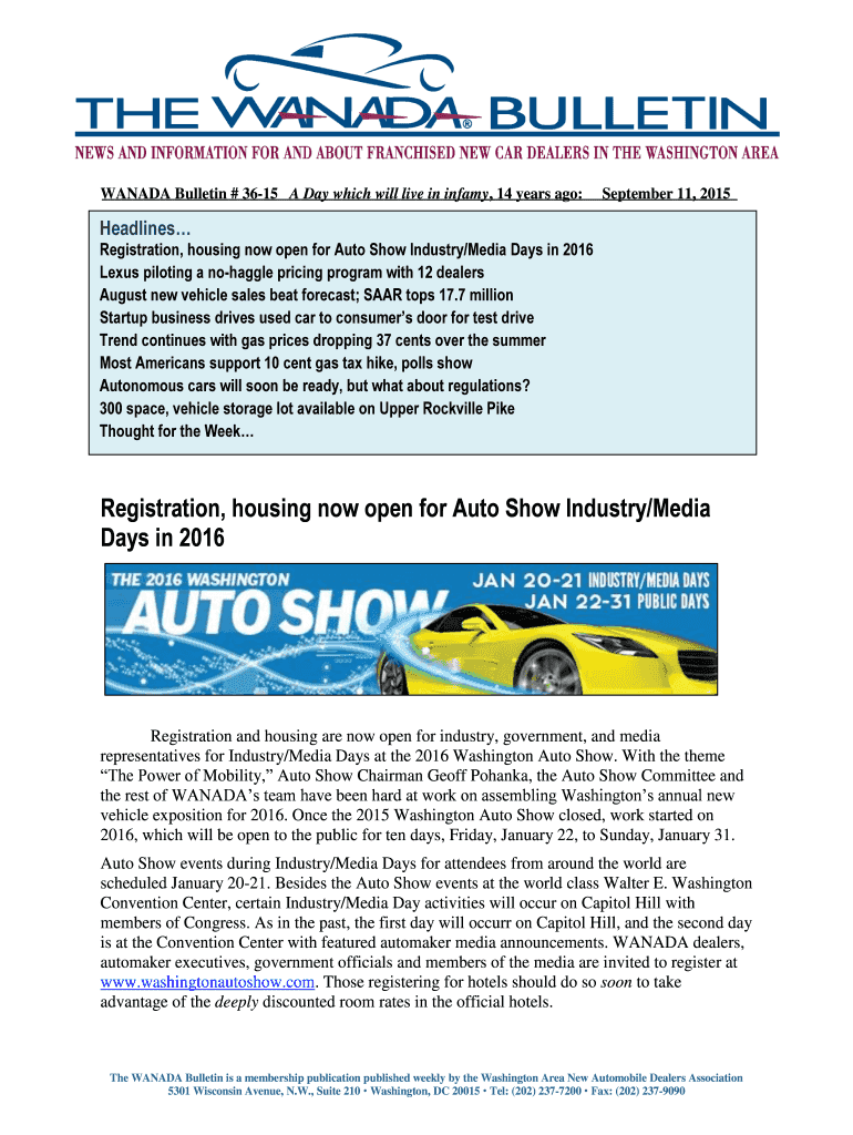 Wanada bulletin 36-15 a is a form required to be filed by certain businesses in the automotive industry.