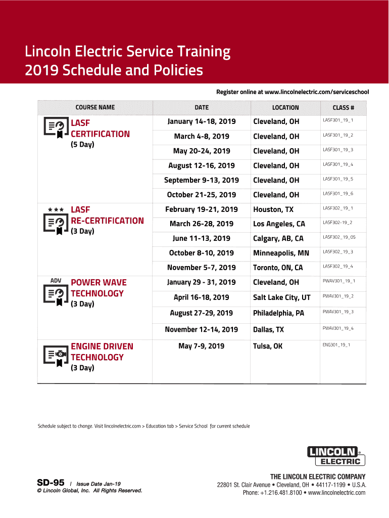 Register online at www.lincolnelectric.com/serviceschoolCOURSE NAMELESS