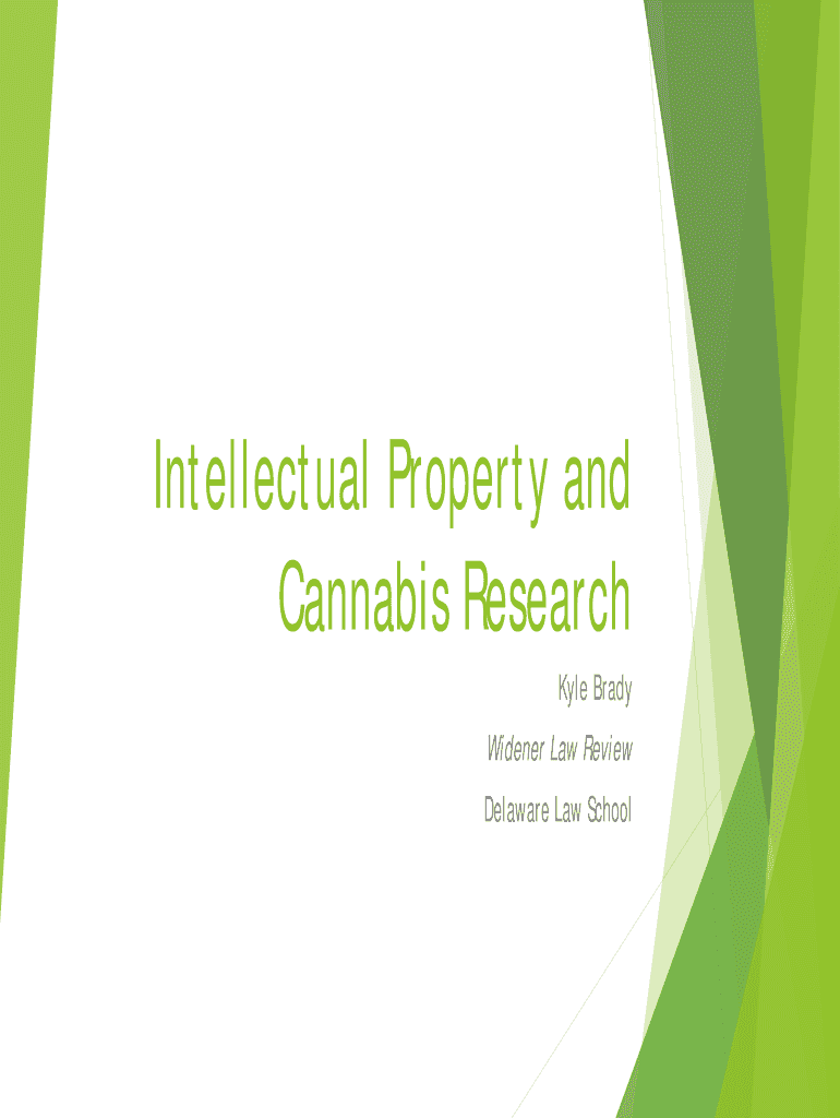 Intellectual Property and Cannabis Research Kyle Brady Widener Law Review Delaware Law Schoolmates of Intellectual Property Patent a document issued by the United States Patent and Trademark Office
