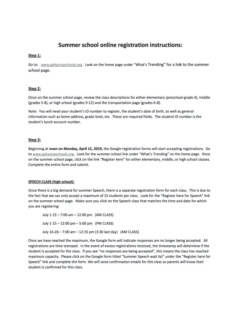 Go to: www.gahannaschools.org. Look on the home page under What's Trending for a link to the summer school page. Step 2: