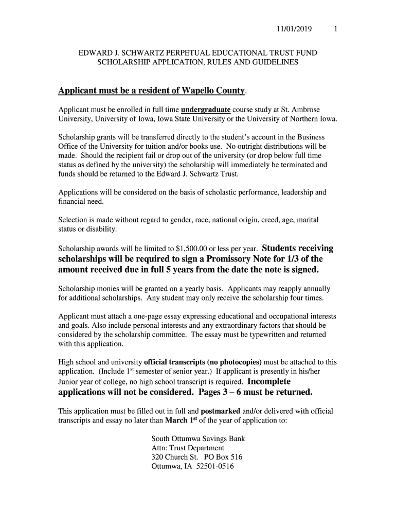 SCHOLARSHIP APPLICATION, RULES AND GUIDELINESApplicant must be a resident of Apollo County.