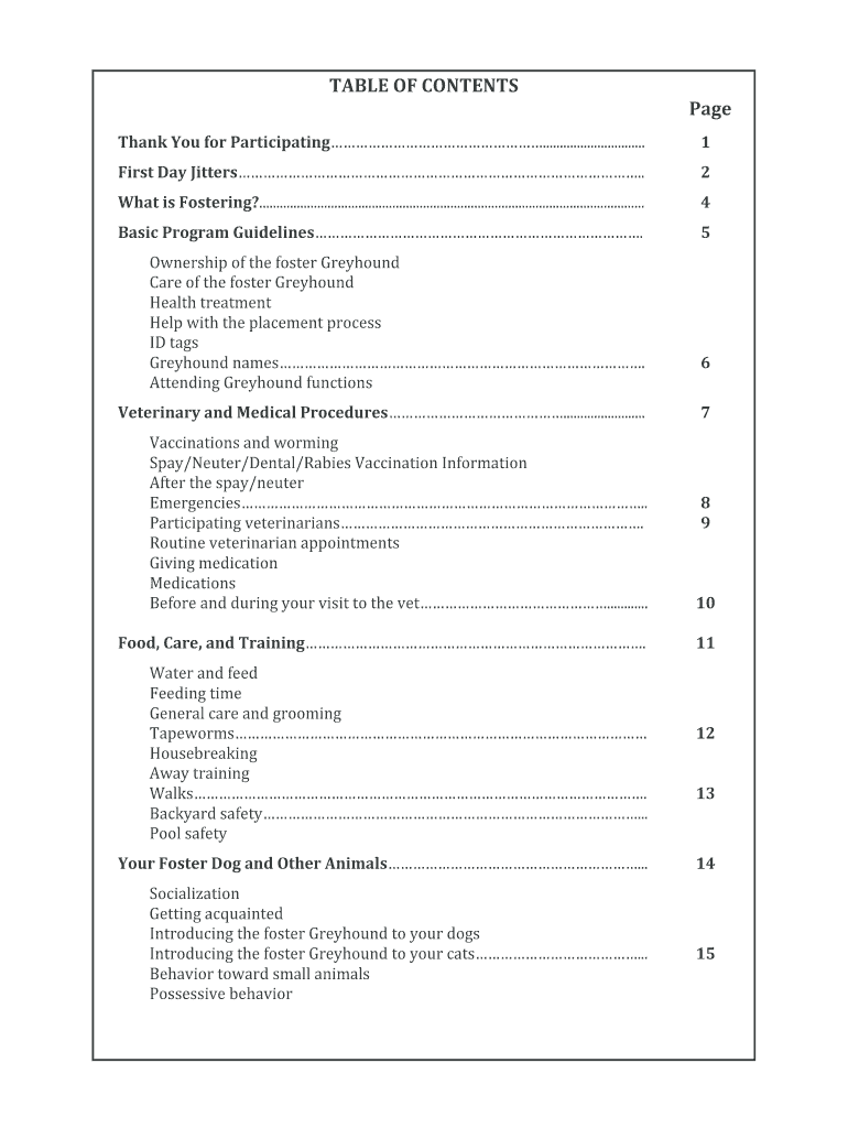 TABLEOFCONTENTSPageThankYouforParticipating..............................1FirstDayJitters.2WhatisFostering?................................................................................