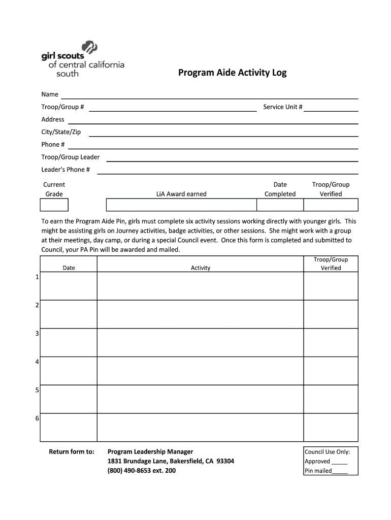 Get the free Program Aide Application - Girl Scouts of Green and White ...