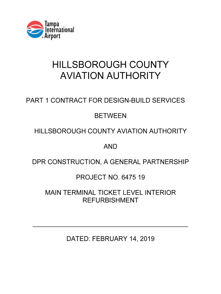 HILLSBOROUGH COUNTY AVIATION AUTHORITY PART 1 CONTRACT FOR DESIGNBUILD SERVICES BETWEEN HILLSBOROUGH COUNTY AVIATION AUTHORITY AND DR CONSTRUCTION, A GENERAL PARTNERSHIP PROJECT NO. 6475 19 MAIN TERMINAL