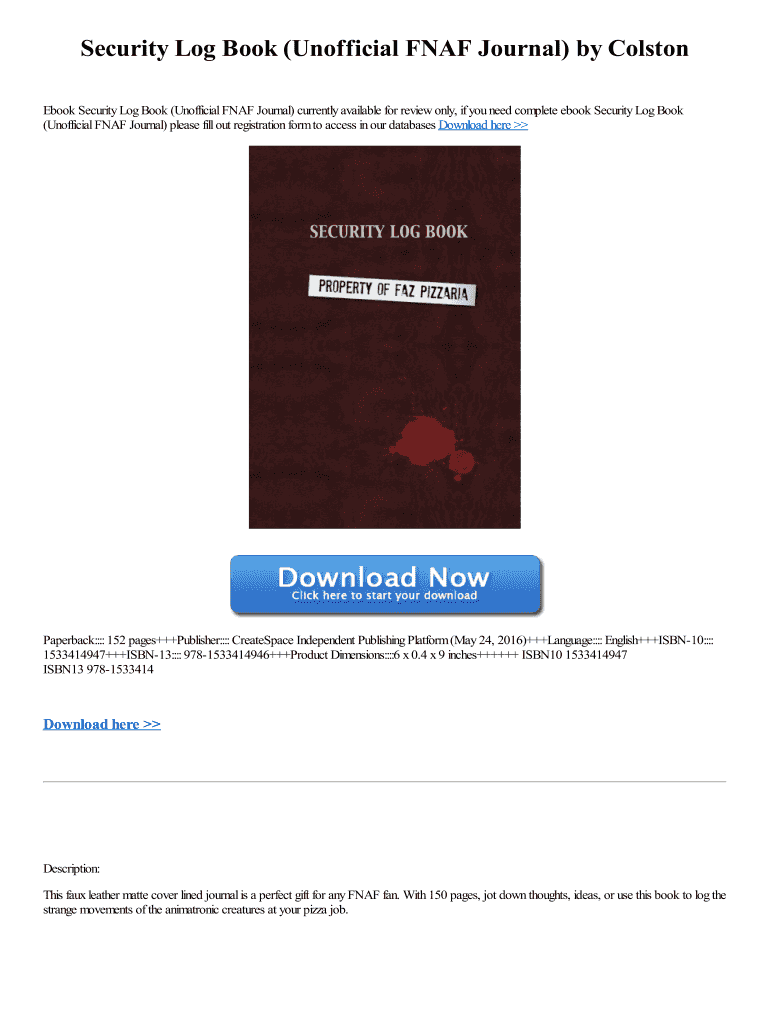 E-Book Security Log Book (Unofficial FNaF Journal) currently available for review only, if you need complete e-book Security Log Book