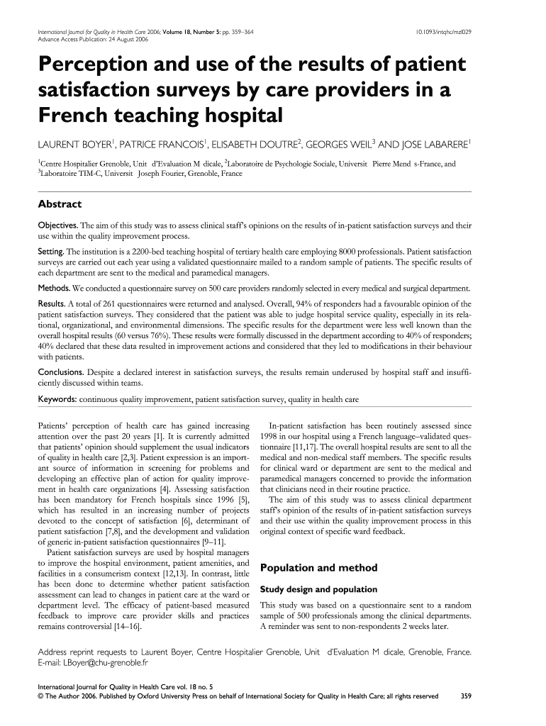 Get the free Perception and use of the results of patient satisfaction ... - NCBI