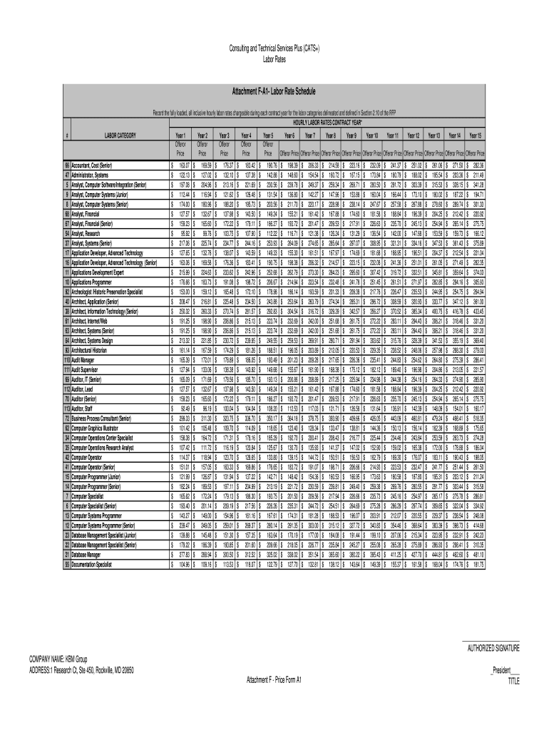 Record the fully loaded, all-inclusive hourly labor rates chargeable during each contract year for the labor