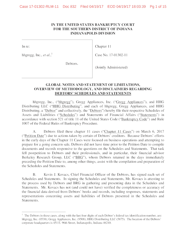 Case 1701302RLM11Doc 832Filed 04/19/17EOD 04/19/17 18:03:39Pg 1 of 15IN THE UNITED STATES BANKRUPTCY COURT