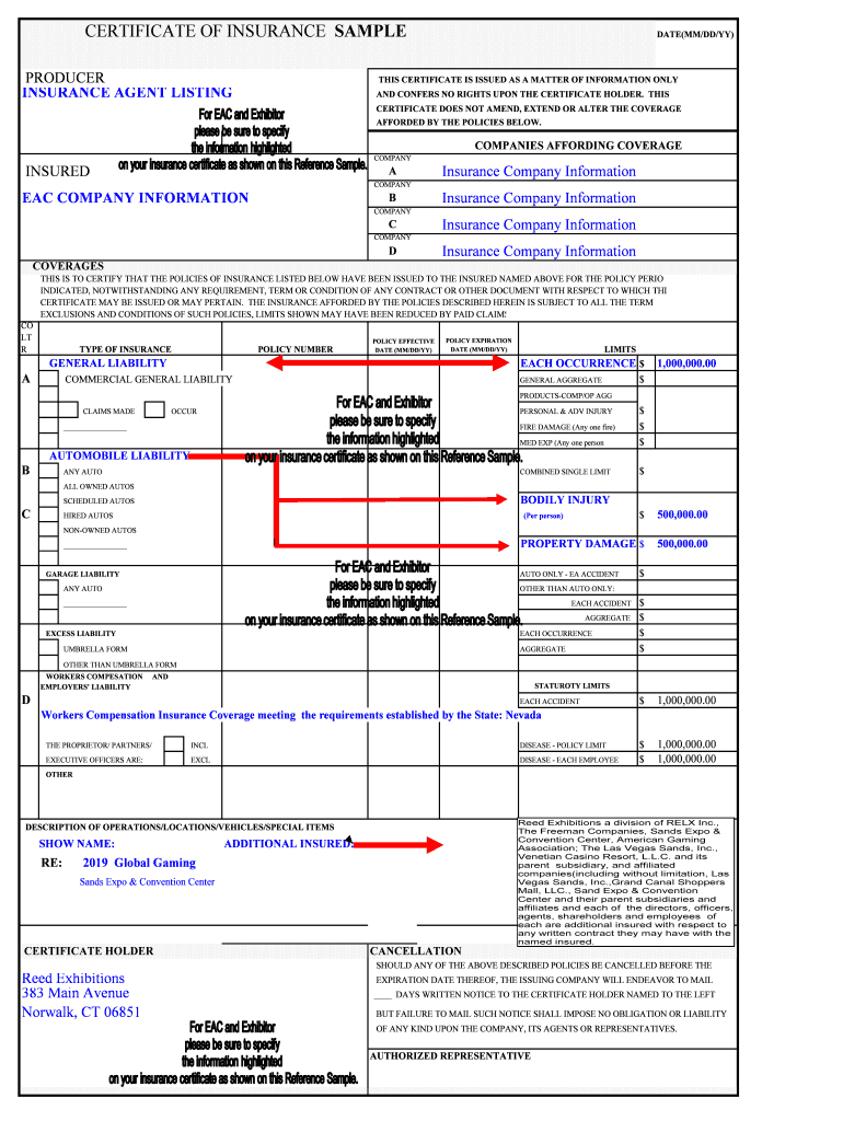How to fill out eac insurance sample g2e