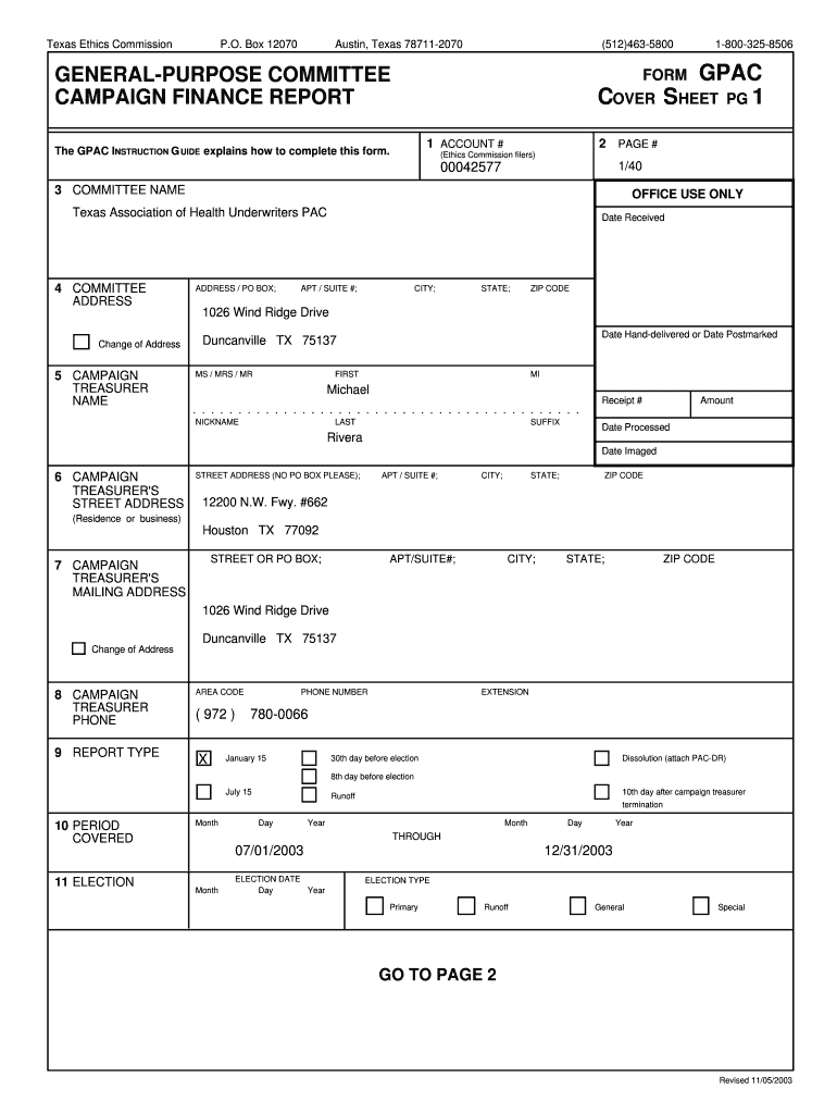 Get the free Texas General-Purpose Committee Form GPAC