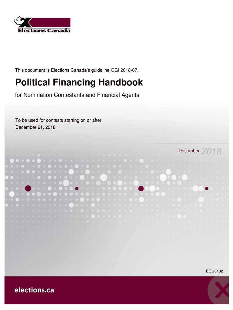 This document is Elections Canada's guideline CGI 201807. Political Financing Handbook