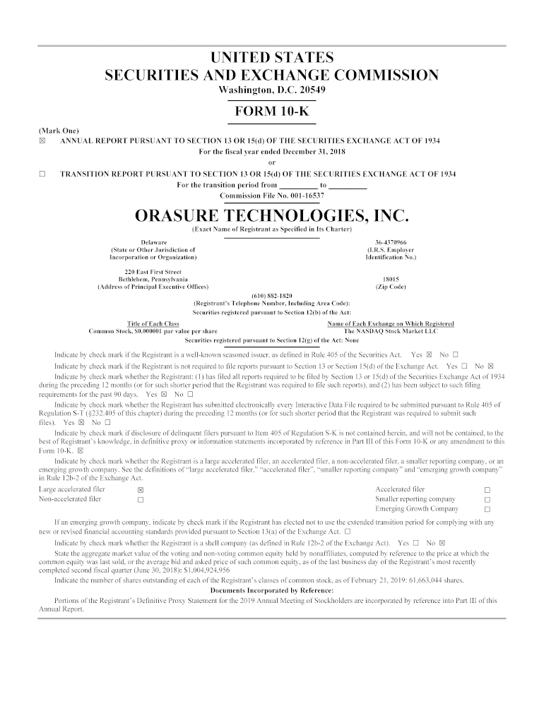 Get the free 2018 Annual Report on Form 10-K - OraSure Technologies