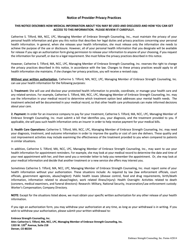 Get the free Notice of Provider Privacy Practices - Embrace Strength ...
