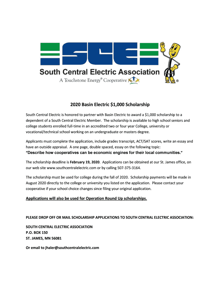 Get the free Scholarship Program Application - South Central Electric ...