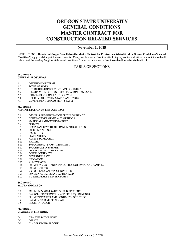 OREGON STATE UNIVERSITY GENERAL CONDITIONS MASTER CONTRACT FOR CONSTRUCTION RELATED SERVICES November 1, 2018, INSTRUCTIONS: The attached Oregon State University, Master Contract for Construction