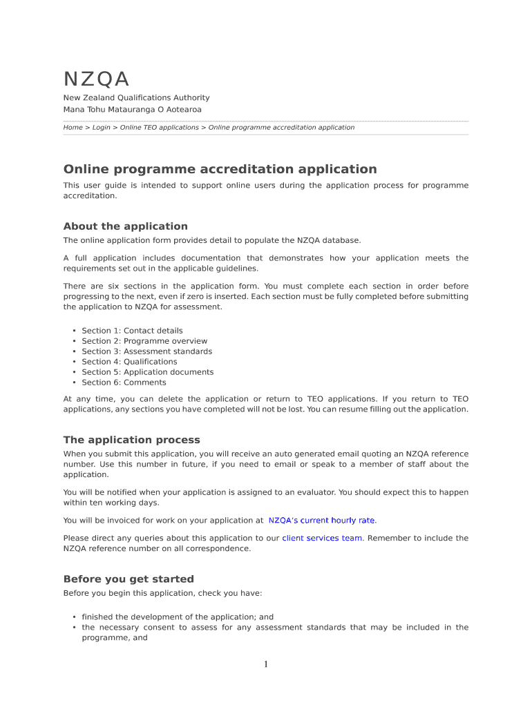 Anew Zealand Qualifications Authority MANA Thou Tauranga O Altered Home Login Online TO applications Online program accreditation applicationOnline program accreditation application This user guide