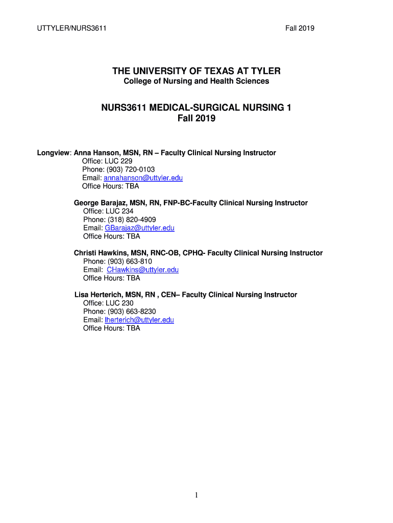 Get the free NURS 3611 Medical-Surgical Nursing I - UT Tyler