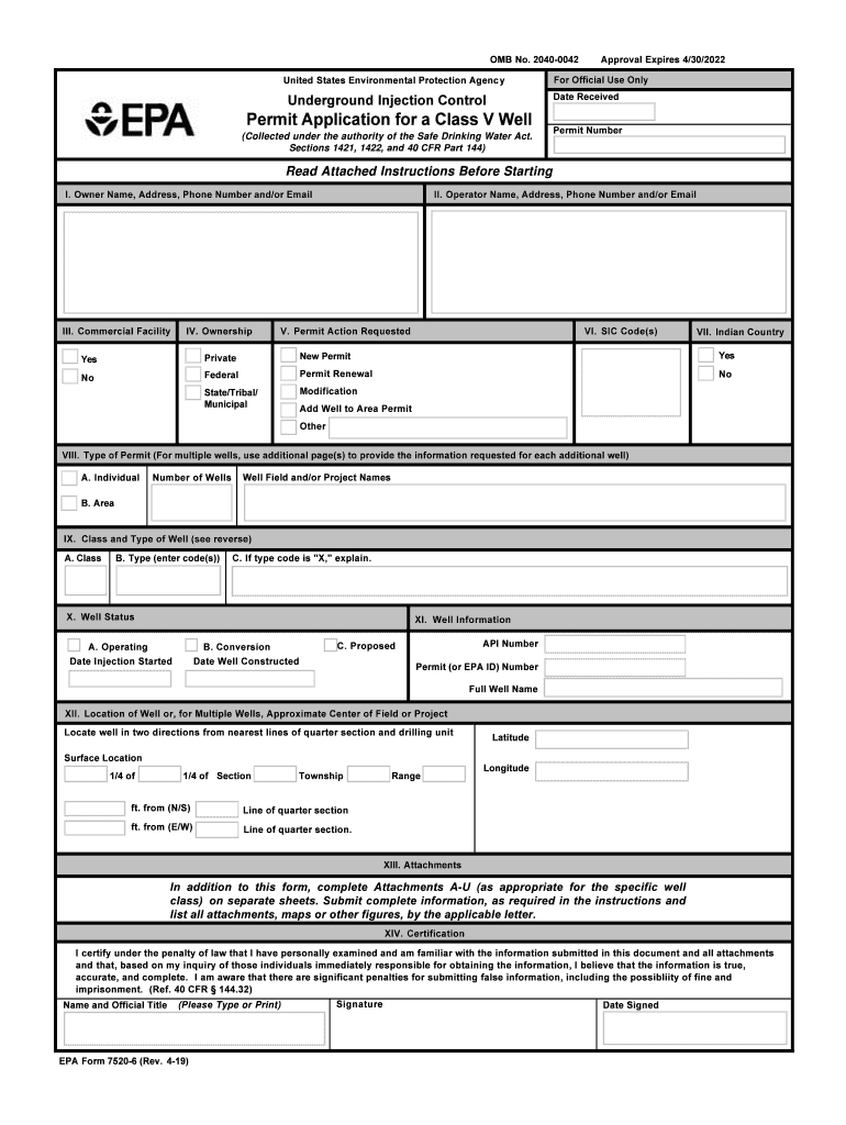 Date ReceivedUnderground Injection ControlPermit Application for a Class V Well