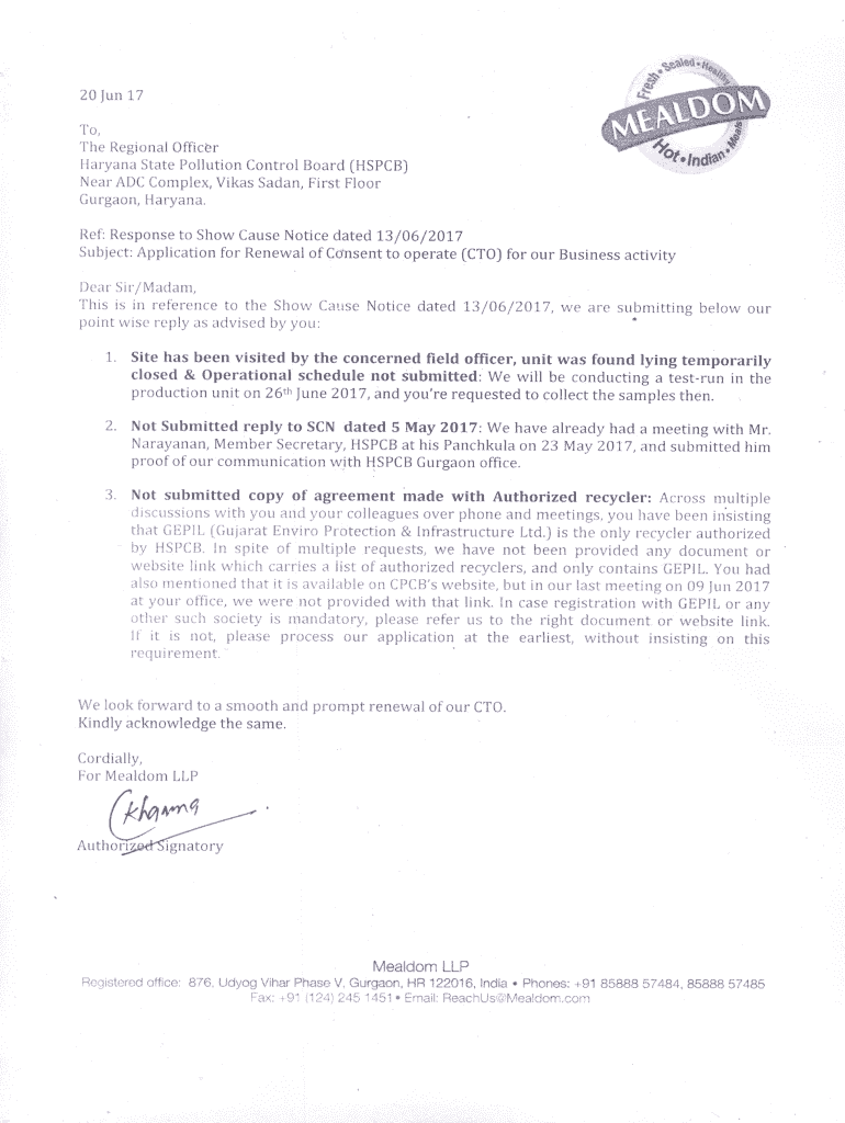 5/5/2017hrocmms.nic.in/OCMMS/applicationProcessingDetails/submitClarification/3971734 Daytime: 0505201716:02:42PM Noticeable: Clarification 1. Notdeposited200%ofCTOfeesaslatefees.2. Notsubmittedanalysisreportoftreatedtradeeffluent/noise