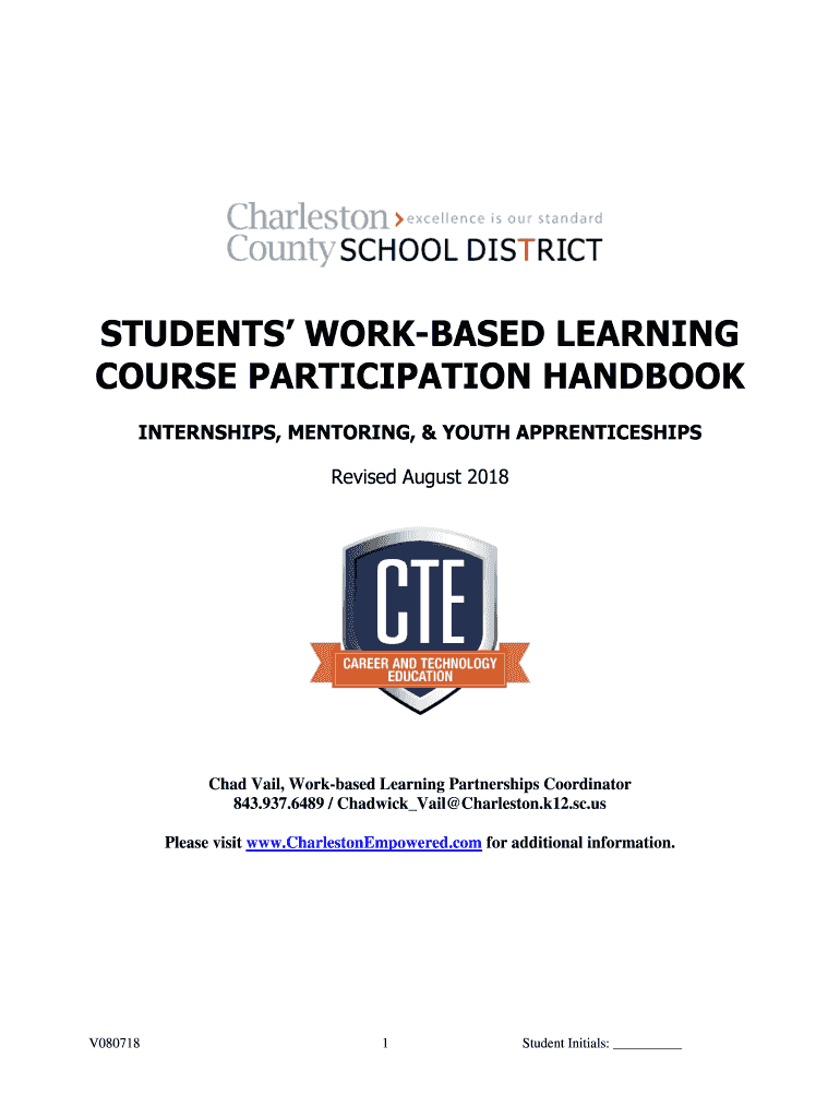 STUDENTS WORKBASKET LEARNING COURSE PARTICIPATION HANDBOOK INTERNSHIPS, MENTORING, & YOUTH APPRENTICESHIPS Revised August 2018Chad View, Work based Learning Partnerships Coordinator 843.937.6489 /