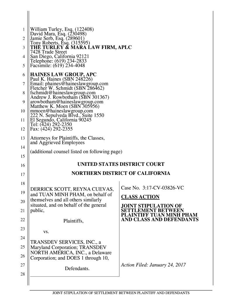 1 2 3 4 5 6 7 8 9 10 11 12 13 14William Turkey, Esq. (122408) David Mara, Esq. (230498) Jamie Serb, Esq. (289601) Tony Roberts, Esq. (315595) THE TURKEY & MARA LAW FIRM, APC 7428 Trade Street San