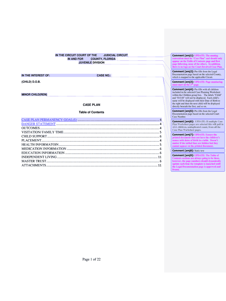 IN THE CIRCUIT COURT OF THE JUDICIAL CIRCUIT IN AND FOR COUNTY, FLORIDA JUVENILE DIVISION IN THE INTEREST OF:CASE NO.:Comment amj1 : UPDATE: The naming convention must be Case Plan and should only