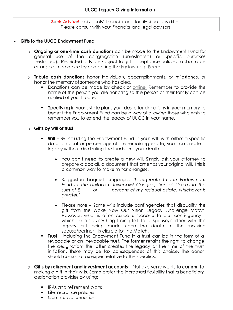 UCC Legacy Giving Information
