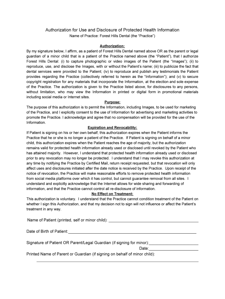 Authorization for Use and Disclosure of Protected Health Information