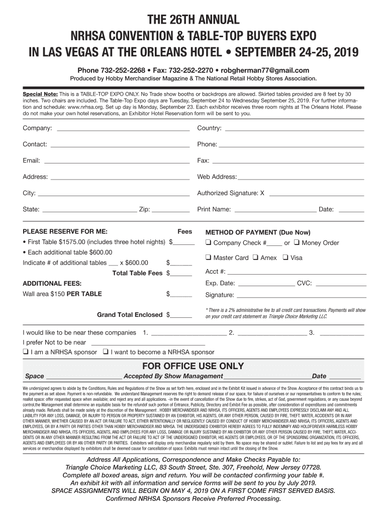 THE 26TH ANNUAL NR HSA CONVENTION & TABLETOP BUYERS EXPO IN LAS VEGAS AT THE ORLEANS HOTEL SEPTEMBER 2425, 2019 Phone 7322522268 Fax: 7322522270 robgherman77 gmail.com Produced by Hobby Merchandiser