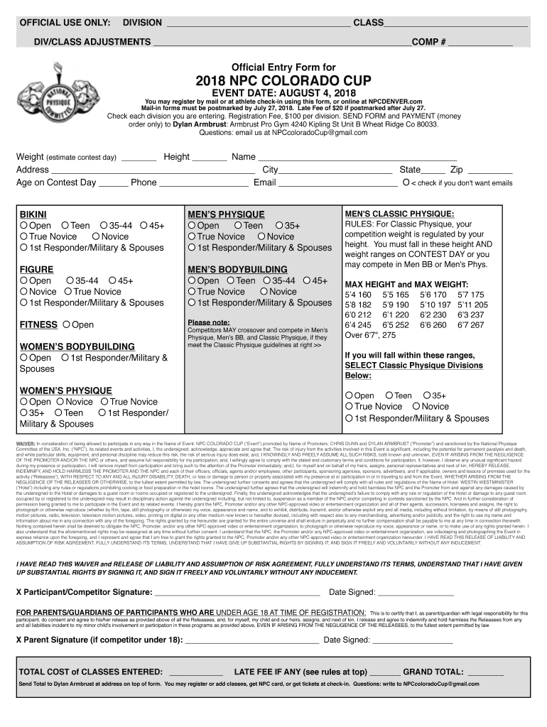 Download the 2018-downloadable-printed-entry-form-npc-colorado-cup form from the official NPC Colorado Cup website.
