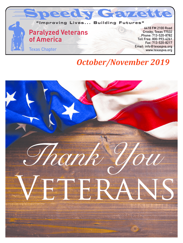Improving Lives... Building Futures 6418 FM 2100 Road Crosby, Texas 77532 Phone: 7135208782 Toll Free: 8009934261 Fax: 7135208217 Email: info Texas.org www.texaspva.orgOctober/November 2019Officers