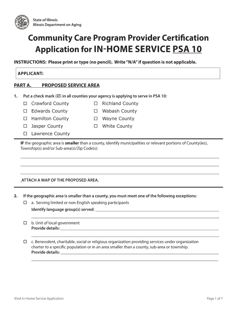 Get the free Application for IN-HOME SERVICE PSA 10 - Illinois.gov - www2 illinois
