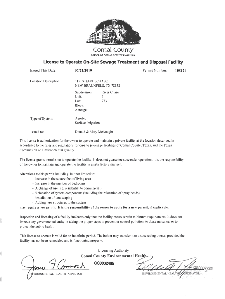 7Comal County Environmental Health OSF Inspection Sheet Installer Name:SW II1st Inspection o.the: Inspector Name:OSF Installer I:7ll/l!r:m, 'A t2nd Inspection Date: Inspector Name: l.of :t Permit#:site