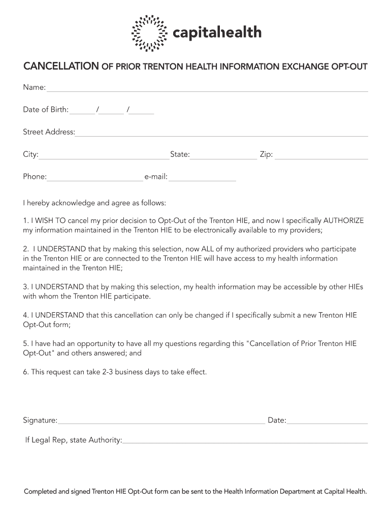CANCELLATION OF PRIOR TRENTON HEALTH INFORMATION EXCHANGE OPT-OUT