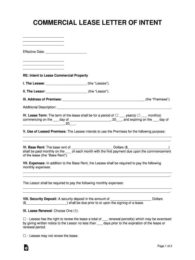 Get the Free Letter of Intent to Lease Commercial Property - Word ...
