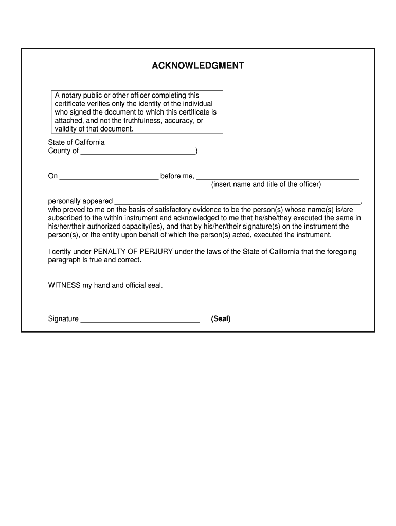 Get the free California All Purpose Notary Acknowledgment Form
