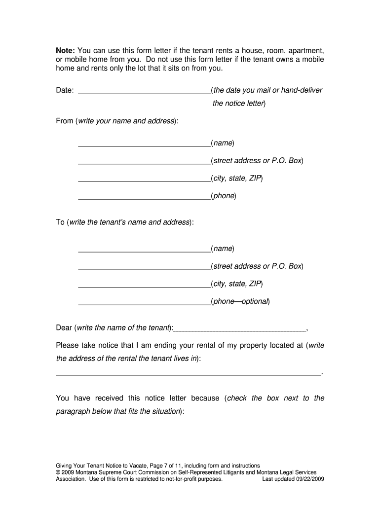 Note: You can use this form letter if the tenant rents a house, room, apartment, or mobile home from you. Do not use this form letter if the tenant owns a mobile home and rents only the lot that it