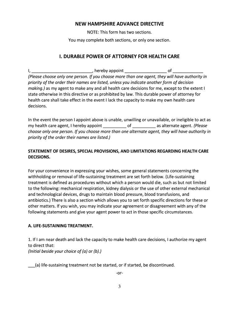 NEW HAMPSHIRE ADVANCE DIRECTIVE