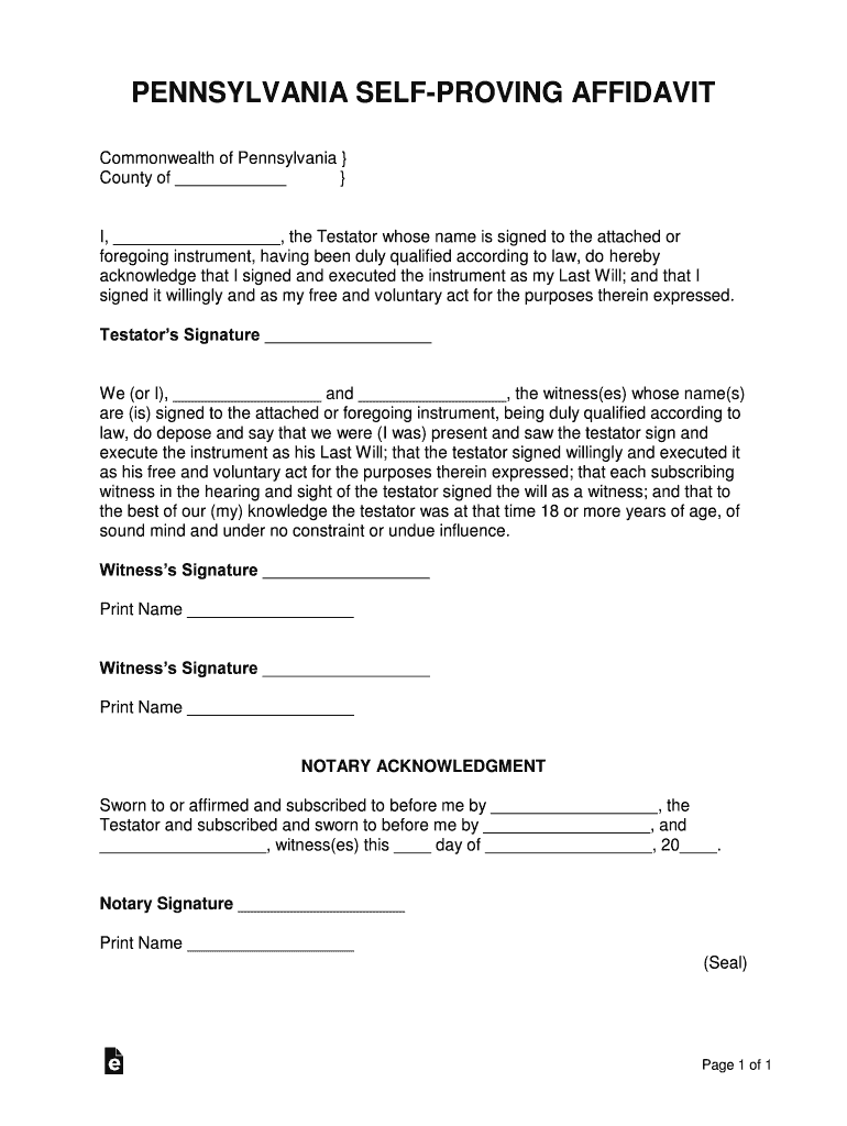 Anyone who wants to validate their will in Pennsylvania is required to file a self-proving affidavit form.